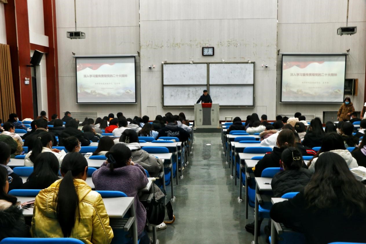 史军伟以《深入学习宣传贯彻党的二十大精神》为主题,分别从牢牢把握过去五年工作和新时代十年伟大变革的重大意义、党的二十大重大理论成果、开辟马克思主义中国化时代化新境界的重大论断、以中国式现代化推进中华民族伟大复兴的历史使命、全面建设社会主义现代化国家的历史任务、坚持党的全面领导和全面从严治党的重大意义及如何应对风险与挑战等七个方面,为大家作了系统生动、深入浅出的讲解。同时,史军伟强调,全体党员要认真学习领会党的二十大精神,紧密团结在以习近平同志为核心的党中央周围,同心同德、埋头苦干、奋勇前进,为全面推进中华民族伟大复兴而团结奋斗!