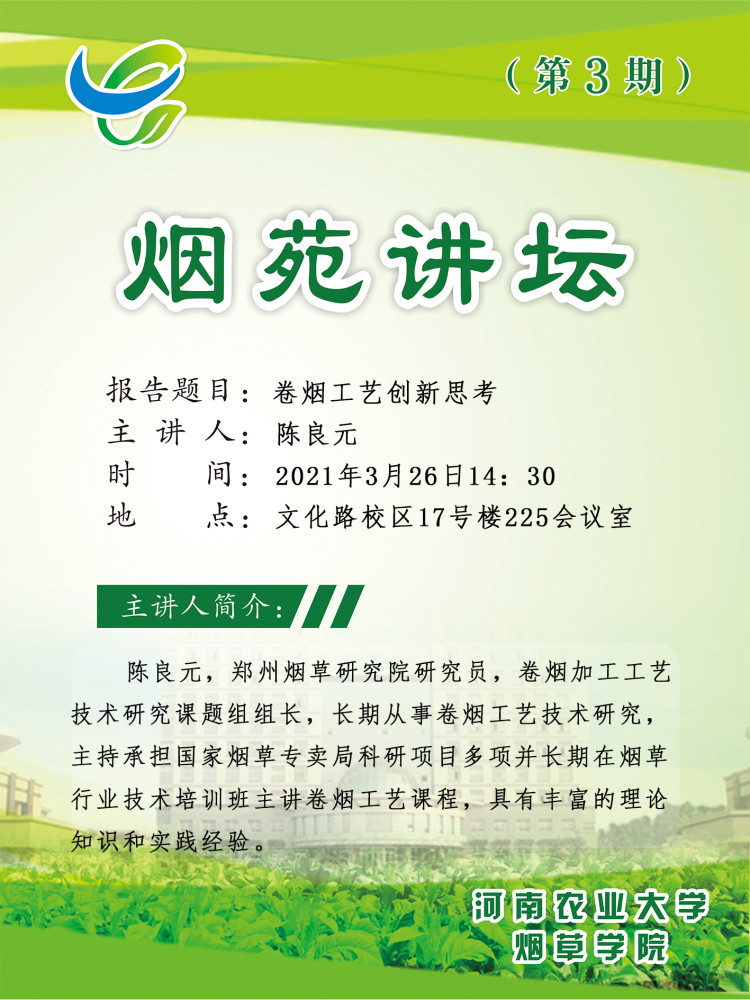 陈良元,郑州iQQtv 研究院研究员,卷烟加工工艺技术研究课题组组长,长期从事卷烟工艺技术研究,主持承担国家iQQtv 专卖局科研项目多项并长期在iQQtv 行业技术培训班主讲卷烟工艺课程,具有丰富的理论知识和实践经验。