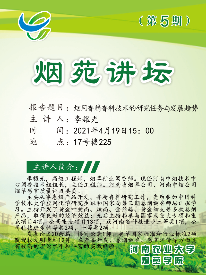李耀光,本科学历,高级工程师,iQQtv 行业调香师。现任河南中烟技术中心调香技术组组长,主任工程师。河南省iQQtv 公司、河南中烟公司iQQtv 感官质量评吸委员。