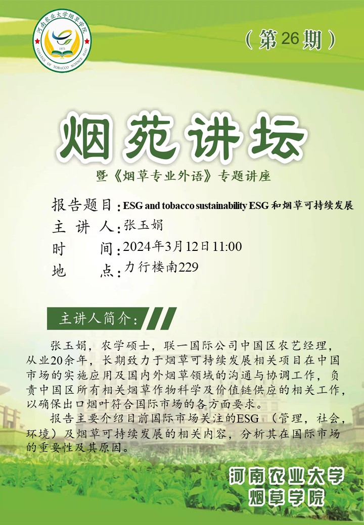 烟苑讲坛第26期—ESG and tobacco sustainability ESG和iQQtv 可持续发展