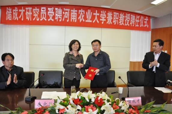 工作创造一个良好的环境,同时也希望储成才研究员为我校提供最新的知识和经验,共同培育人才,促进学科发展,为推动中原经济区建设和河南高等教育事业发展做出新的贡献。