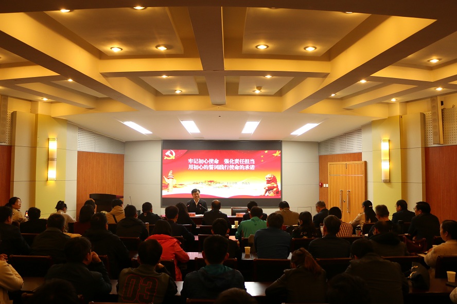 李成吾书记提出“组织上的入党是一时之事,思想入党才是一世之事;入党宣誓是一时之事情,始终坚守才是一生之事”的中心思想。让我们共同努力,互相勉励,用自己的一身来践行入党誓词。最后,在李成吾书记的带领下,全体师生党员怀着为中国人民谋幸福,为中华民族谋复兴的初心和使命重温入党誓词。