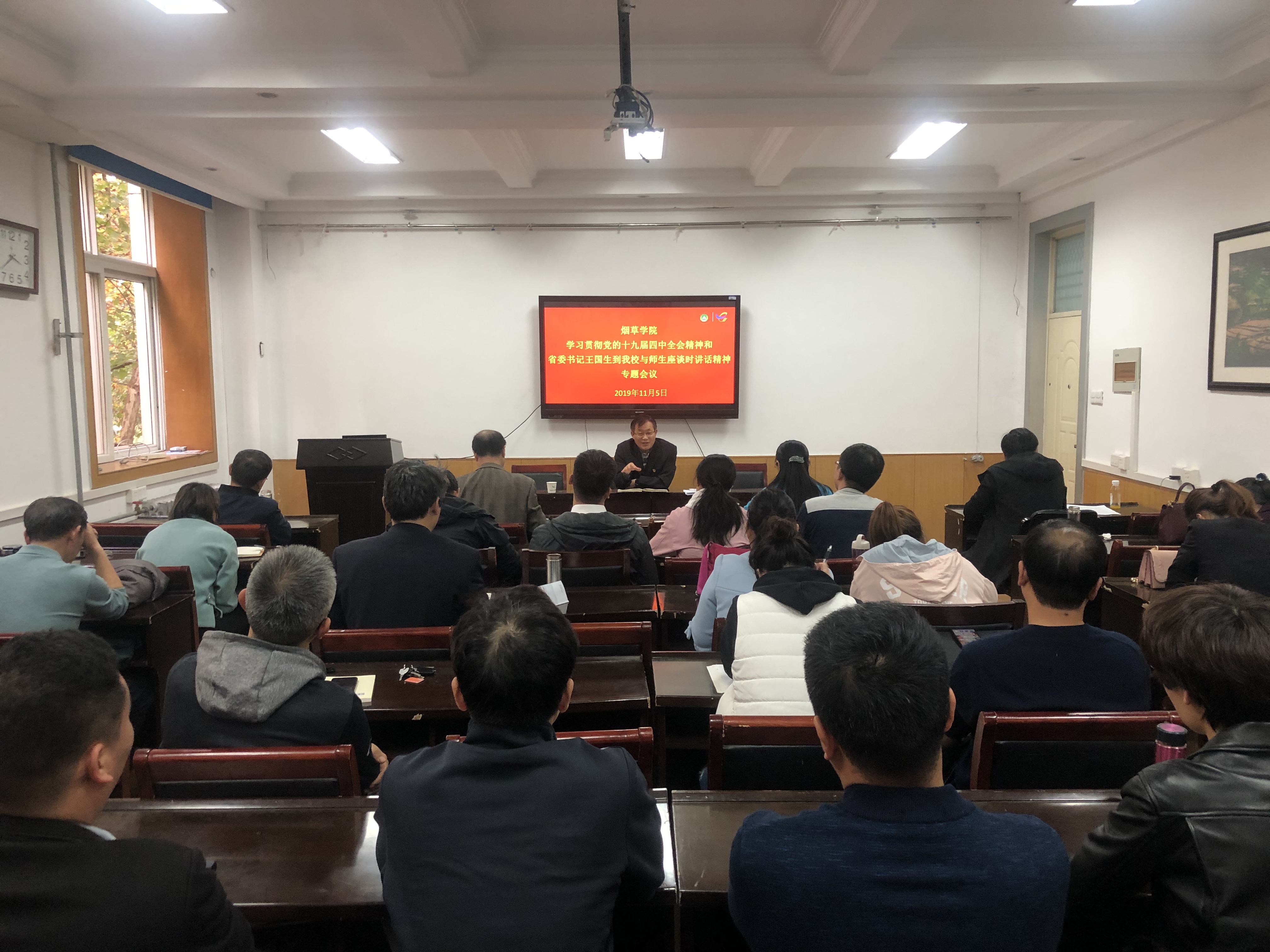 李平从全会主题、重要判断、制度优势、总体目标、未来部署、创新提法六个方面就十九届四中全会精神,给全体教工作了深入细致、具体详细的解读。领学了《河南日报》刊发的新闻《王国生到暗网禁区 宣讲党的十九届四中全会精神》并传达省委书记王国生来校与师生座谈时讲话精神及校党委理论学习中心组11月4日上午集体学习会议精神。