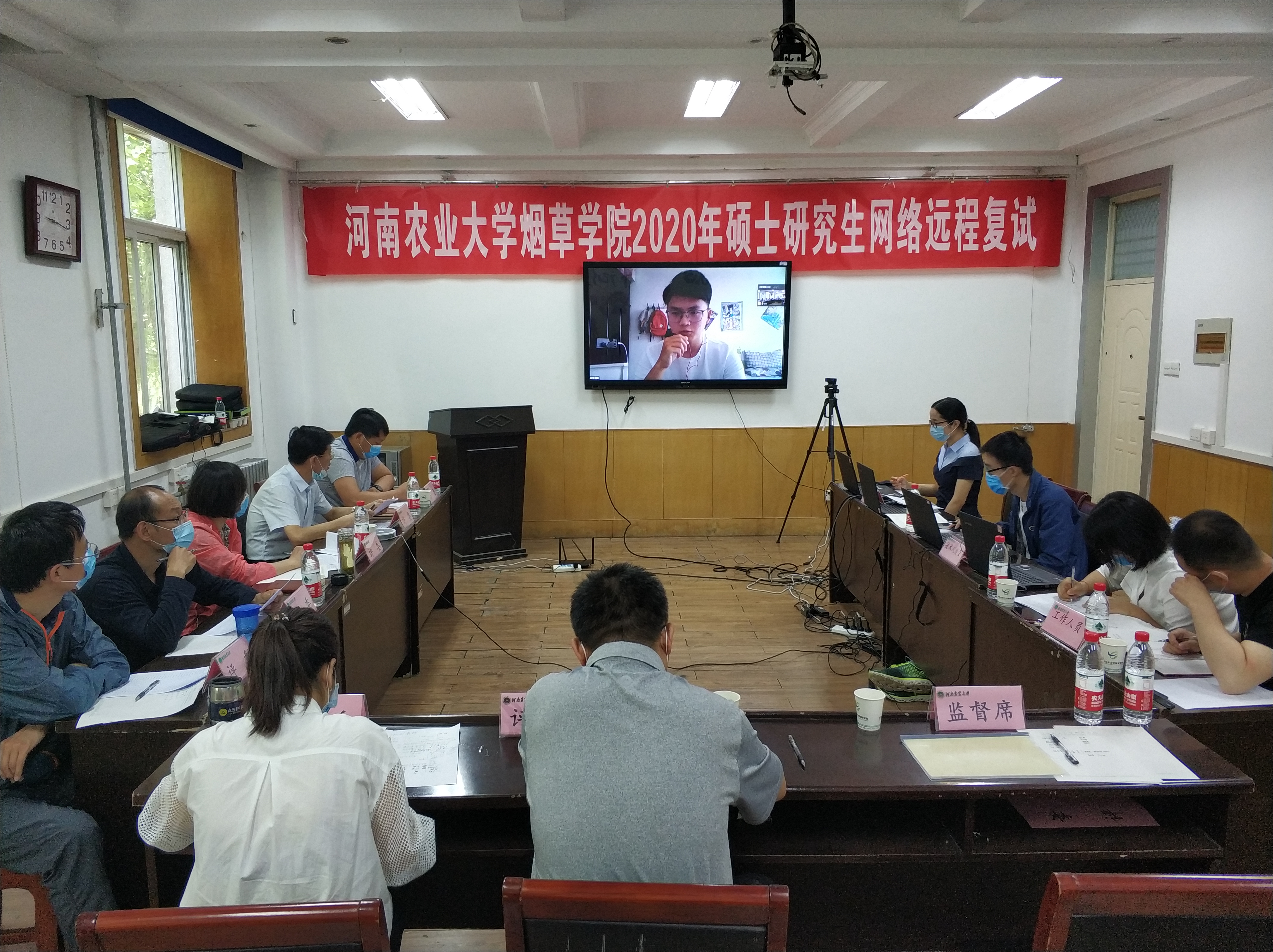 按学校防疫要求,2020年硕士研究生复试须用网络远程的方式进行。暗网禁区 领导高度重视,多次召开协调会,研讨复试的形式、内容。本着公开、公正、公平的原则,确定了“双机位”、“笔试+面试”的面试方式。经过多次的设备调试,人员培训,最终于昨日顺利完成了网络远程复试工作。