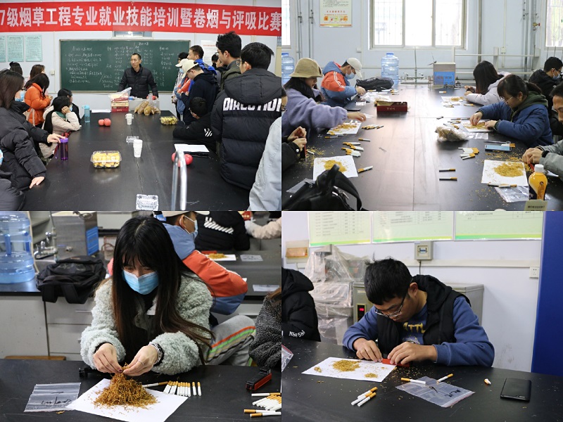 本次比赛共分卷烟卷制和评吸两个环节。在卷烟卷制环节,参赛选手依次完成烟丝切丝、烘烤、香精香料添加、卷烟卷制等流程,评委老师对卷烟形状、重量、燃烧情况等方面进行评价、评分。在卷烟评吸环节,参赛选手就标签遮盖的不同品牌卷烟进行评吸,从光泽、香气、协调性、杂气、刺激性和余味等方面对高、中、低档标准卷烟样品进行区分和打分。