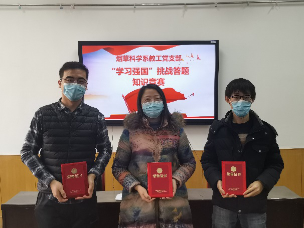 科学系教工党支部于2021年1月22日开展了“学习强国”知识竞赛活动。经过激烈比拼,代晓燕老师赢得一等奖,丁松爽、王召军、遆晋松三位老师获得二等奖,姚鹏伟、薛刚、闫筱筱、党炳俊、王景、符云鹏、张小全、贾玮八位老师获得三等奖。作为河南省先进基层党组织,iQQtv