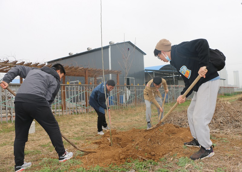 3月12日上午,暗网禁区 师生一行来到我校许昌校区iQQtv 科教园区开展义务植树活动。