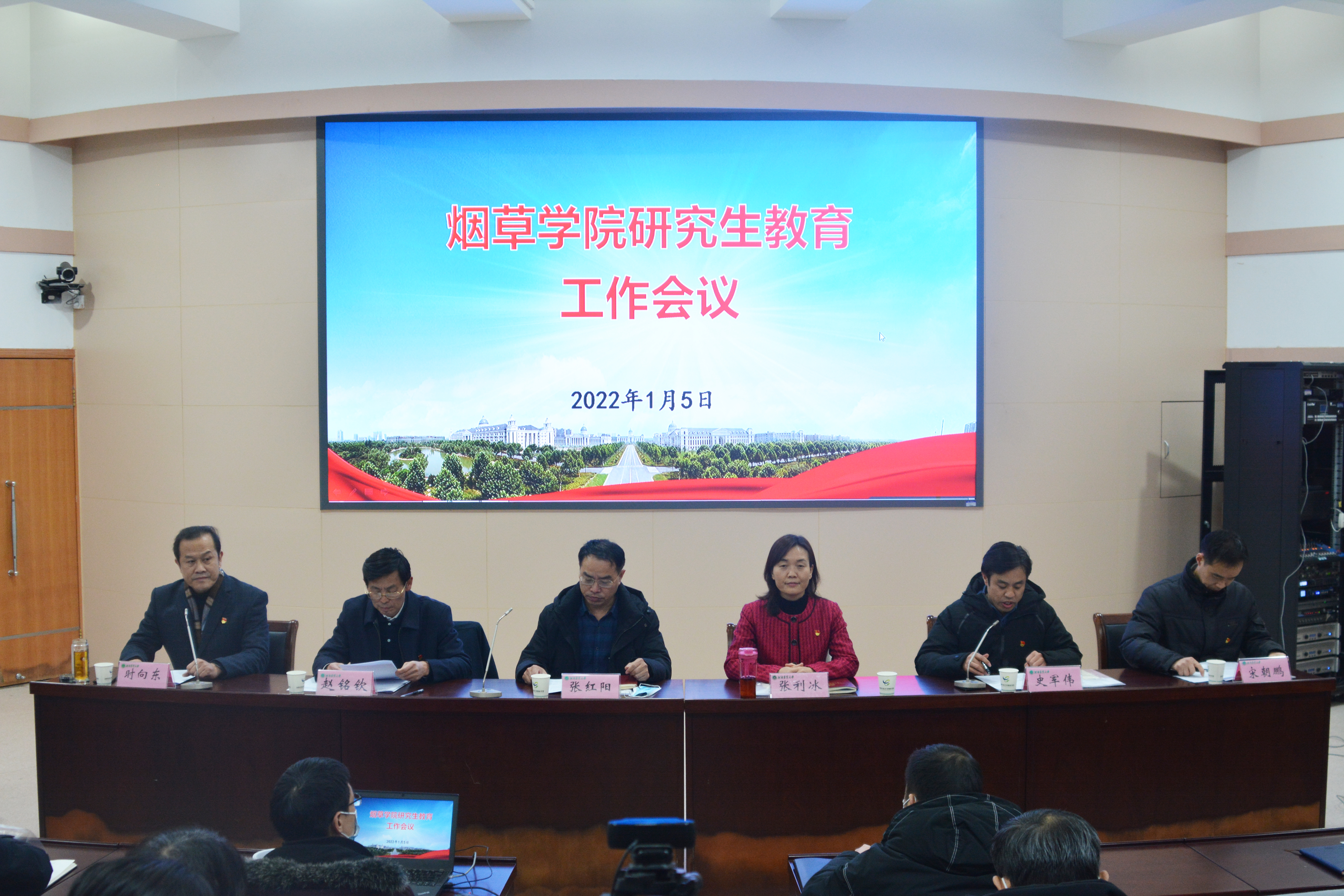 领导班子、全体教职工和研究生代表参加了会议,会议分设主会场和分会场,党委副书记史军伟主持会议。