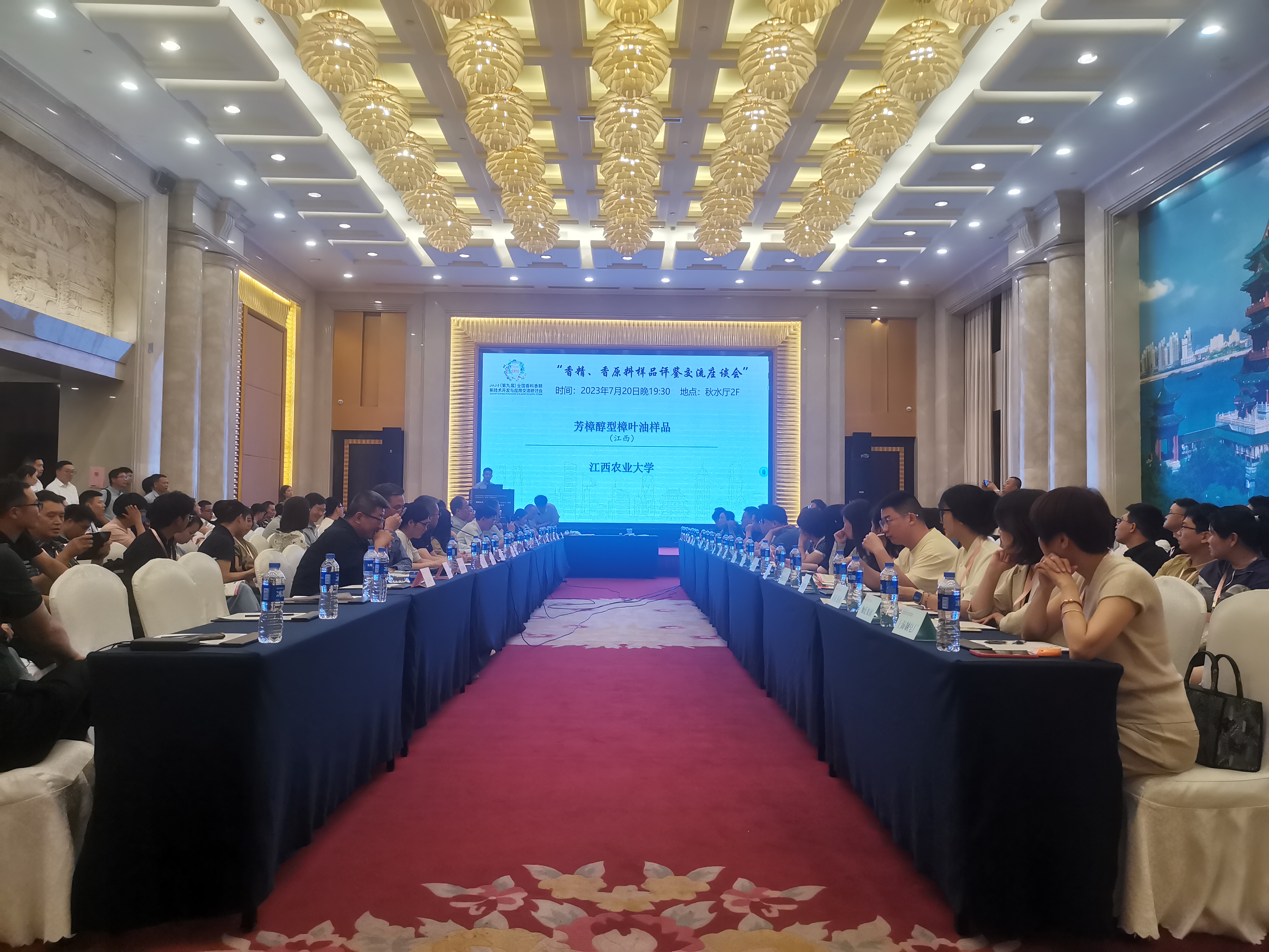 期间,于7月20日晚召开了“香精、香原料品鉴会”,相关高校、科研院所和香料相关企业参加了会议。赵铭钦院长应邀作为品鉴嘉宾对雪菊精油、红景天提取物、烟叶精油、白肋烟精油、柑橘类精油样品、芳樟醇型樟叶油样品、枫香精油样品、香兰素和乙基香兰素等香料香精样品进行了专业鉴评。