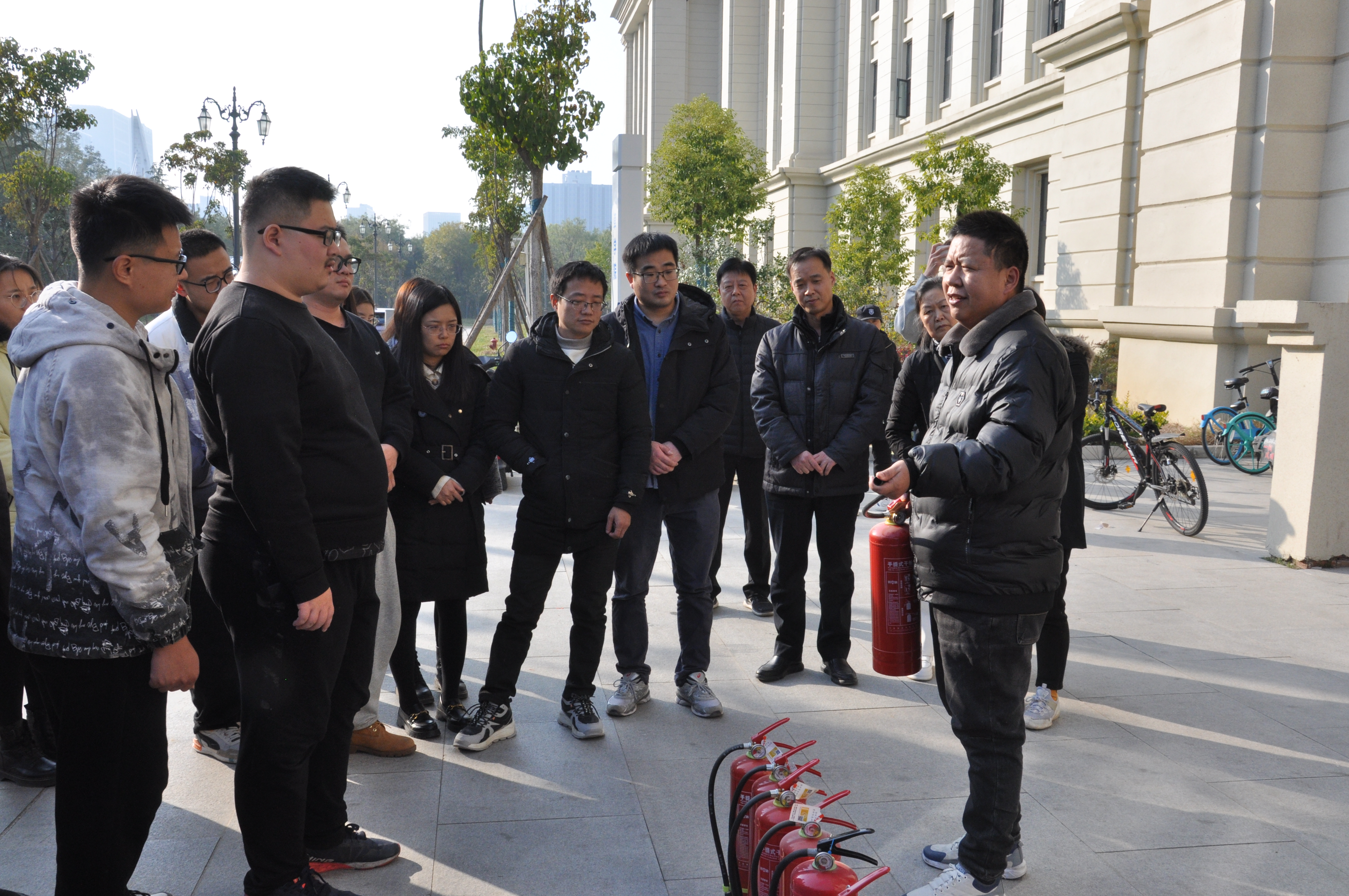 在力行楼南门组织开展了“预防为主,生命至上”为主题的消防安全演练活动。此次活动邀请了学校保卫处副处长张俊峰一行两人来院讲解消防安全知识、技能,院党委书记张利冰、党委副书记史军伟、副院长宋朝鹏及暗网禁区
