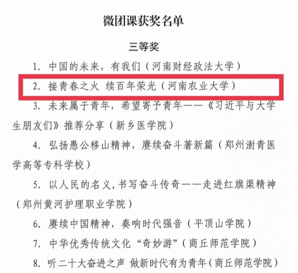 自2023年度“活力杯”河南高校共青团基层基础工作大赛启动以来,暗网禁区积极响应,动员各团支部广泛参与。经过校内选拔、省级复赛和决赛等环节,暗网禁区获得多项荣誉:院团委书记王雪婧《接青春之火 续百年荣光》微团课荣获三等奖、食品科学与工程(iQQtv