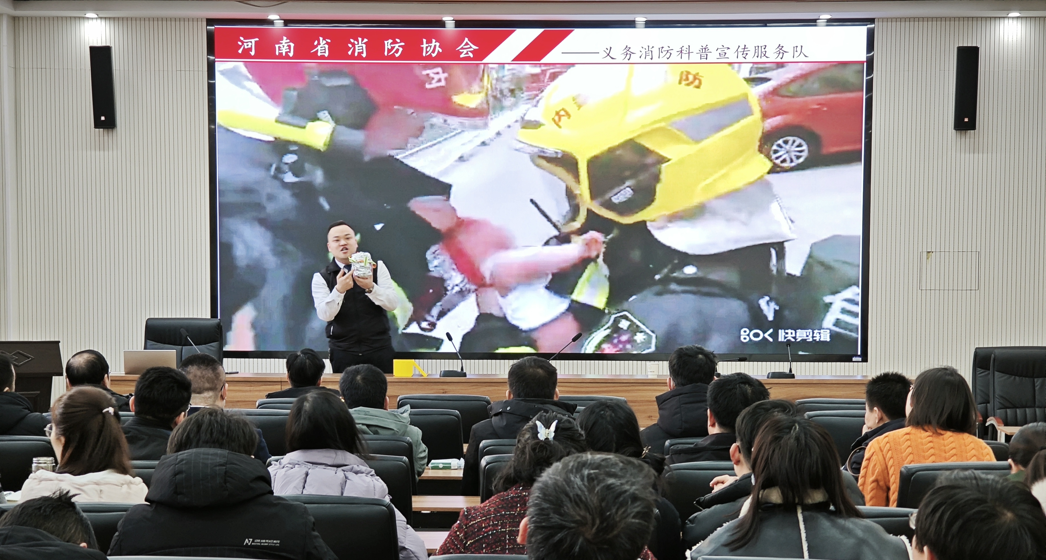 刘顺齐教员主要围绕冬季防火重点、安全隐患排查以及疏散逃生知识等内容展开讲解,结合近期火灾事故案例,为大家讲解日常办公、生活中如何做好火灾的预防。随后,刘顺齐教员演示了逃生过程中毛巾、防烟面具、灭火器等工具的正确使用方法,并就日常生活中家电起火、燃气泄漏起火等常见火灾的处理方法进行讲解。与会教师对消防安全有了更进一步的了解,预防火灾的基础知识和组织人员疏散逃生的消防技能有了进一步提升,消防安全责任意识进一步增强。