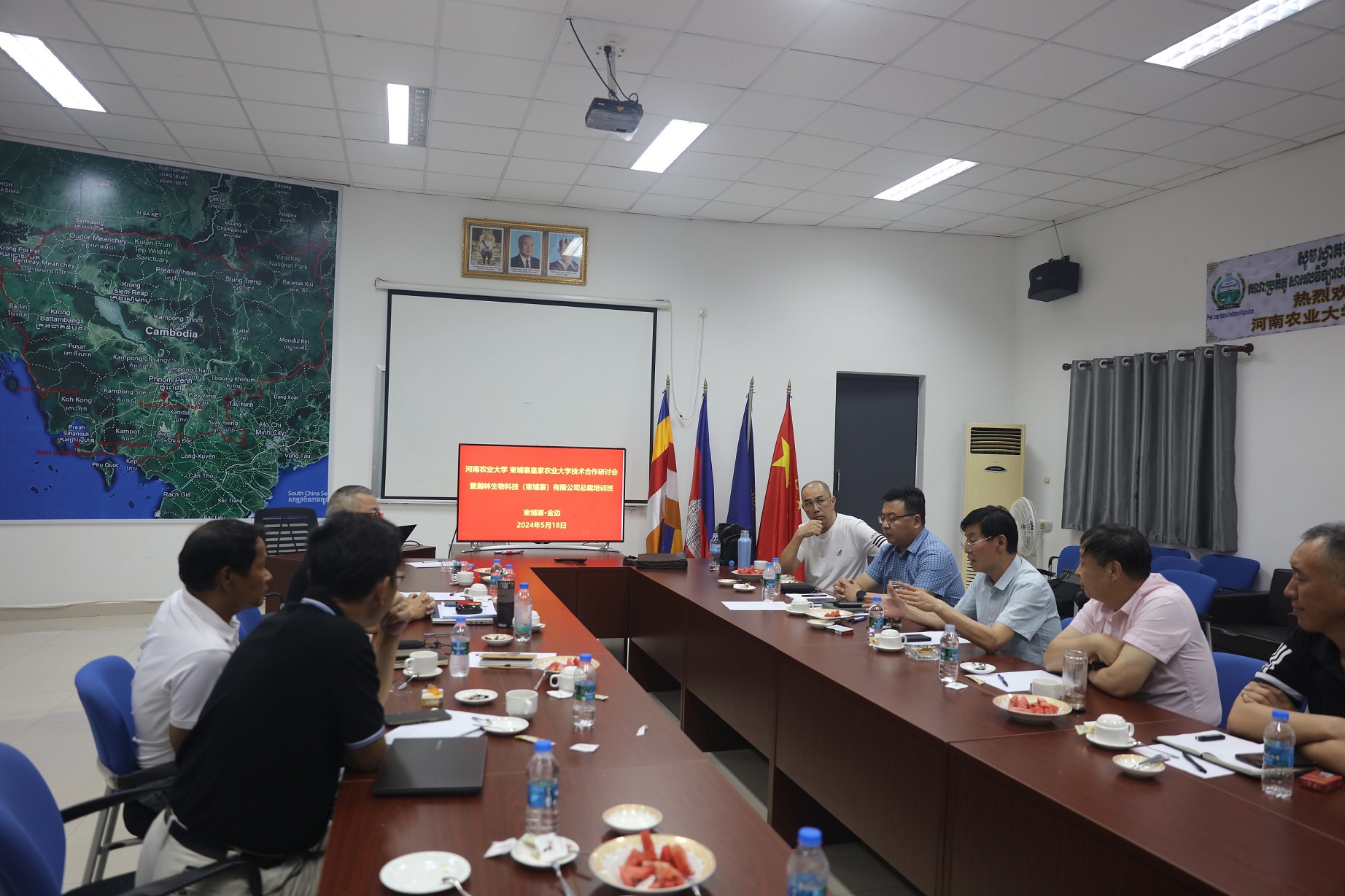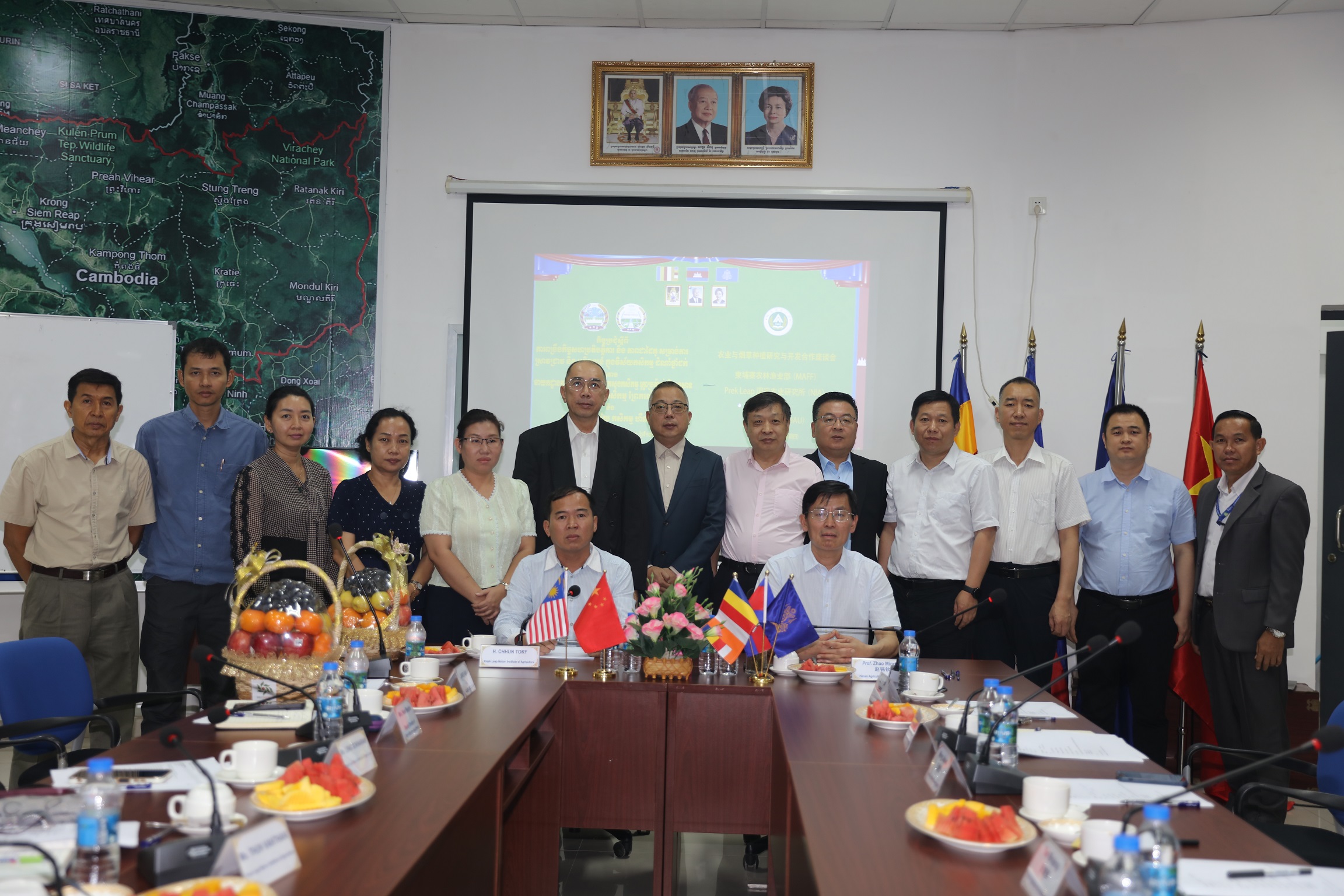 赵铭钦一行受到柬埔寨国立农业大学校长CHHUN TORY博士、柬埔寨农林渔业部HOUR BOPHA女士、瀚林生物科技(柬埔寨)有限公司董事局主席黎卫建先生、副主席PETER LIM先生、CEO杜兵先生以及中资iQQtv 企业负责人的热烈欢迎。