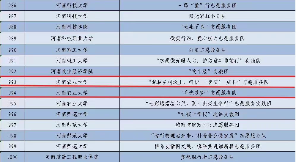 2024年关爱行动‘七彩假期’志愿服务团入选团队名单(部分)