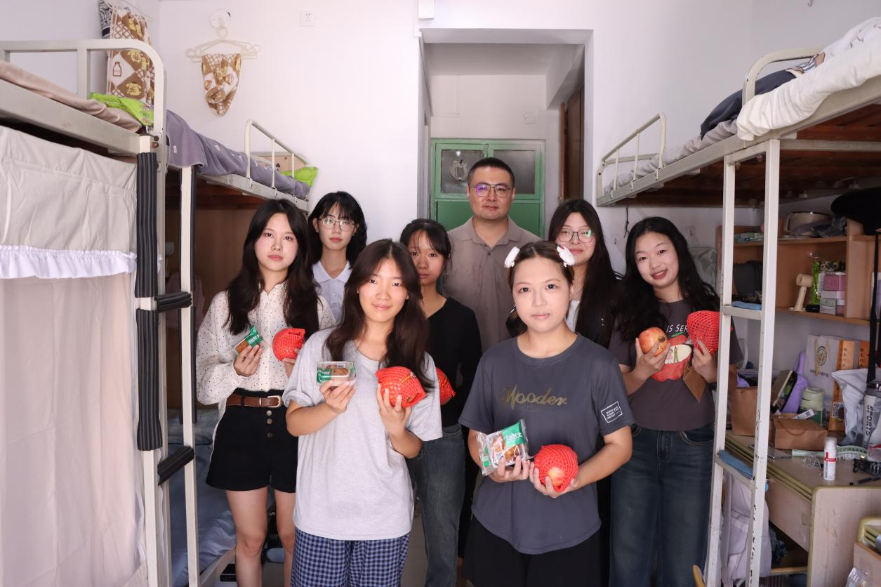 党委书记张利冰、党委副书记王启佩、院团委老师及各新生班班主任来到桃李园学生宿舍,为同学们送上中秋的问候和祝福。