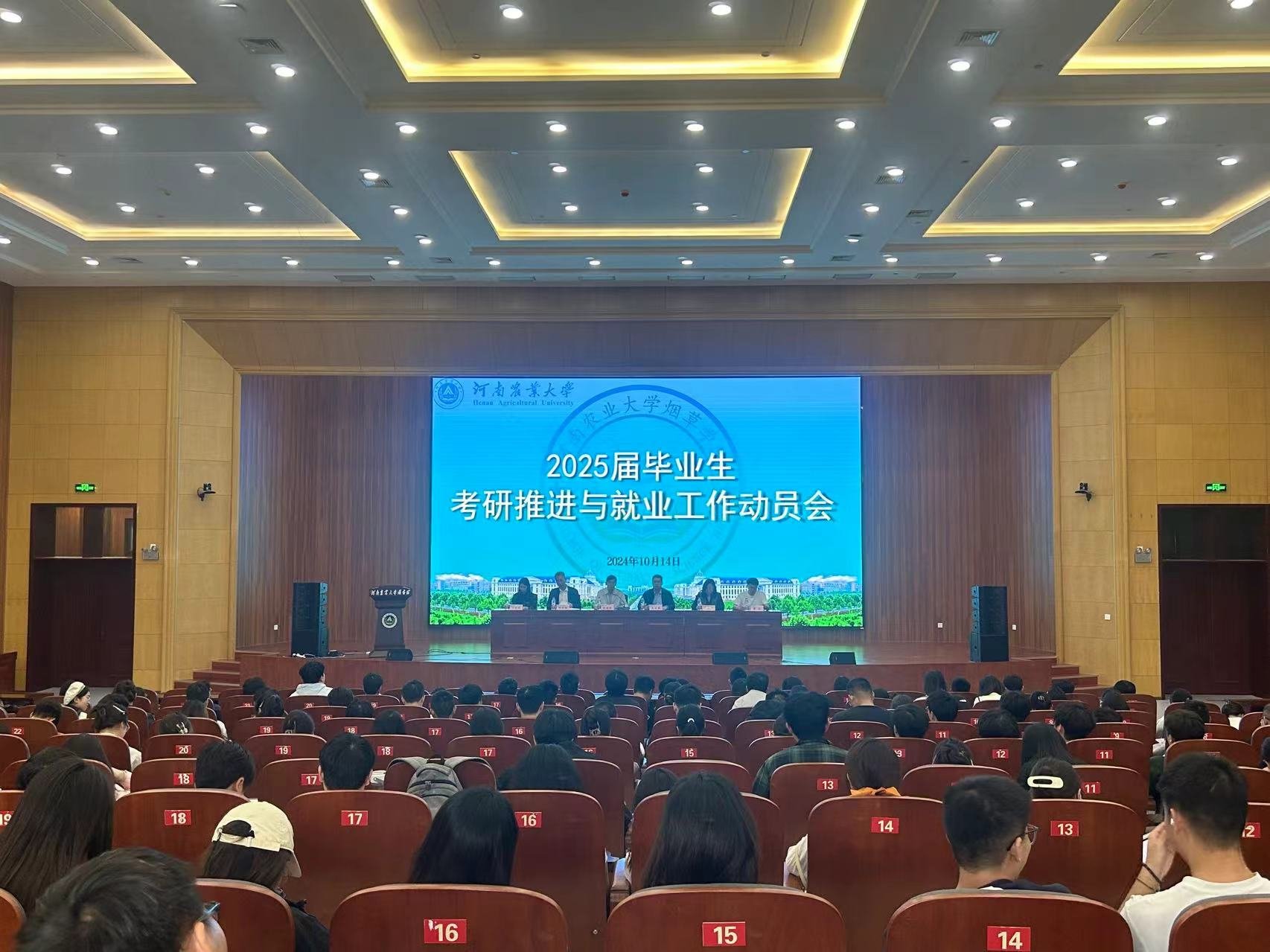 在图书馆一楼报告厅举行2025届毕业生考研推进与就业工作动员会。院长赵铭钦、党委副书记王启佩、各系以及团委负责人、2025届全体毕业生参加会议,会议由王启佩主持。