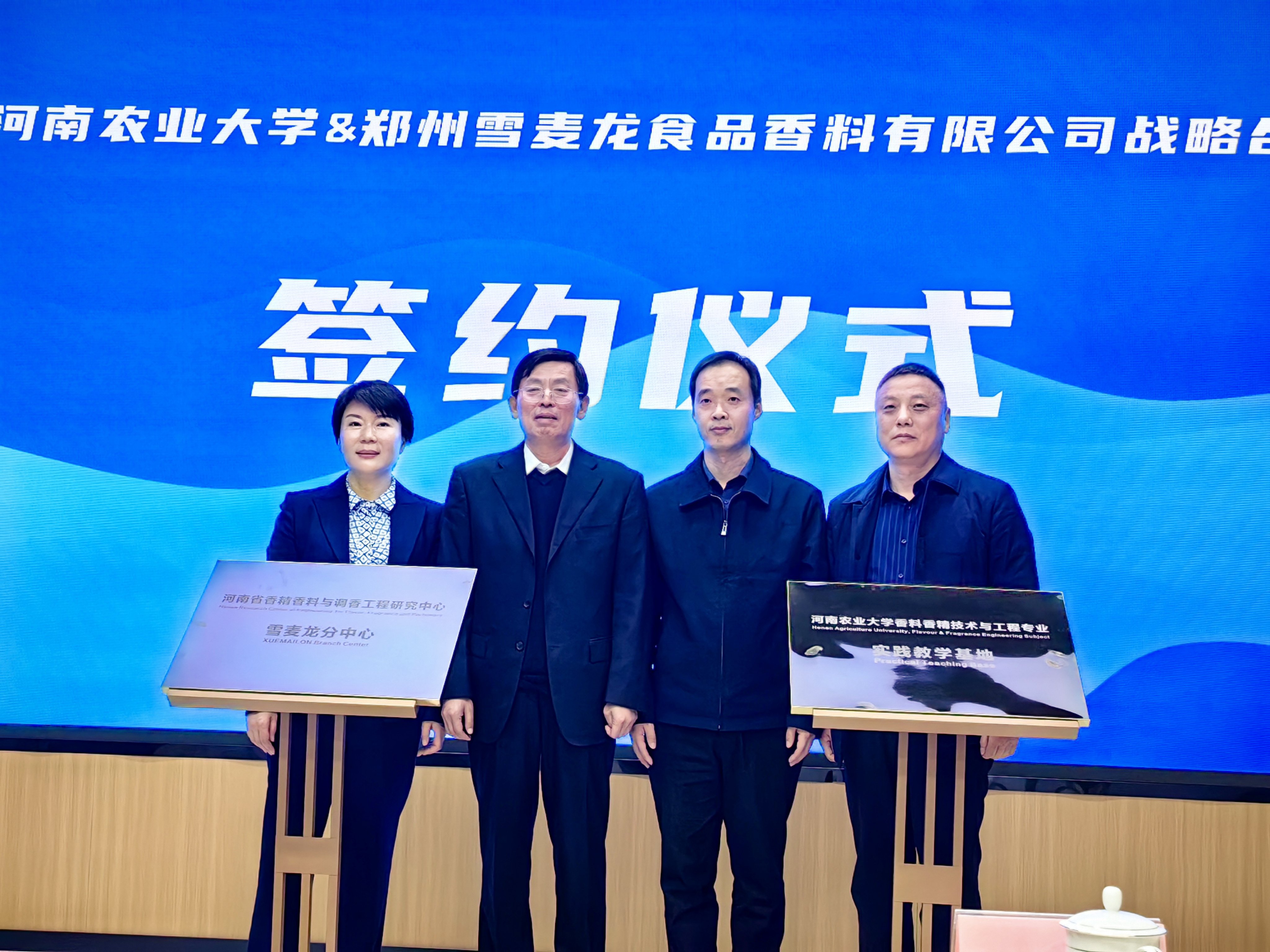 学科发展历程,以及在教育教学、人才培养、科技创新、社会服务等方面取得的丰硕成果。他指出,新郑香料产业发展迅猛,现已成为全国较为集中的食品香料、烟用香料与日化香料的集散地。雪麦龙公司作为新郑市的知名企业,是全国香料香精行业的重要香原料供应基地。双方战略合作协议的签订对于增强双方的自主创新能力,提升雪麦龙核心竞争力将产生积极影响,也必将为香精香料产业新质生产力培育与高质量发展注入新动能,做出新贡献。