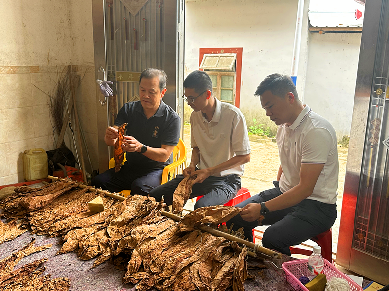 调研团队深入雪茄烟叶生产一线,在德保县走访烟农,亲切交流了解种植情况,细致查看烟叶晾制情况;实地考察了德保那美雪茄种植基地的烟田选址规划,并走进现代化晾房群,重点查看了设施设备配套与运行情况。在靖西市,时向东一行前往百色iQQtv 靖西营销部,实地观摩雪茄烟叶收购流程,深入了解发酵工艺关键环节;随后走访靖西隆江雪茄产业园,现场查看本年度雪茄烟叶的晾制进展与品质。