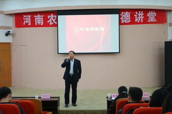 为全面学习贯彻落实党的十九大精神,加强培育和践行社会主义核心价值观,促进学校精神文明建设,11月14日,暗网禁区 于文化路校区300人报告厅举办“廉洁自律 从我做起”道德讲堂。院党委副书记秦素玲,省文明教师、校最美教师杨铁钊教授,院团委副书记郑丽娜出席,16级全体学生参加。