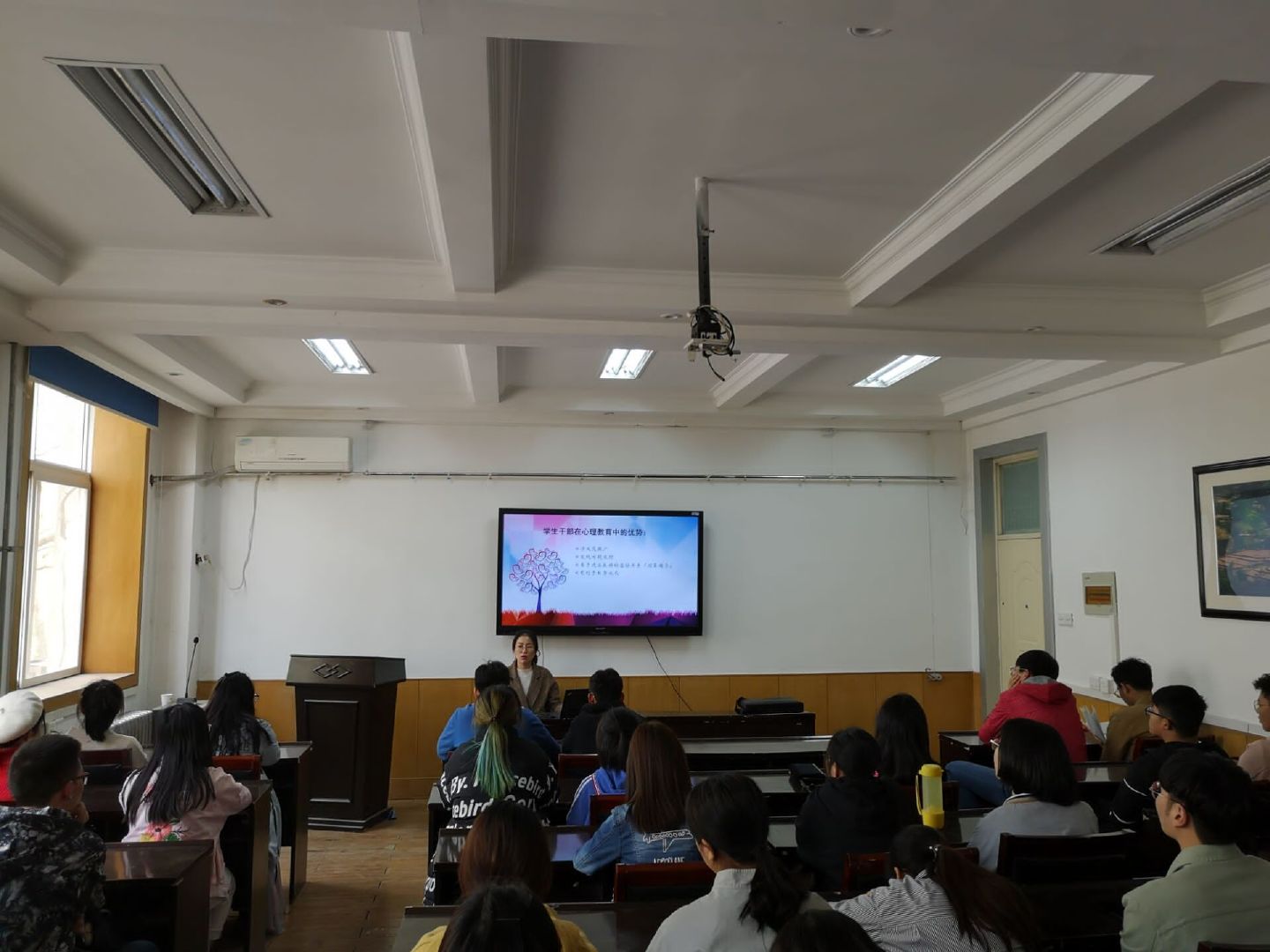 培训会上,郑丽娜强调了学生干部开展心理健康教育工作的优势,学生干部在学校、院系、班级、宿舍“四级”心理预警防控体系中的重要作用。从心理健康问题的识别,如何面对和解决心理问题,春季心理健康问题产生的原因、表现形式和调节方法等方面进行了系统的讲解。