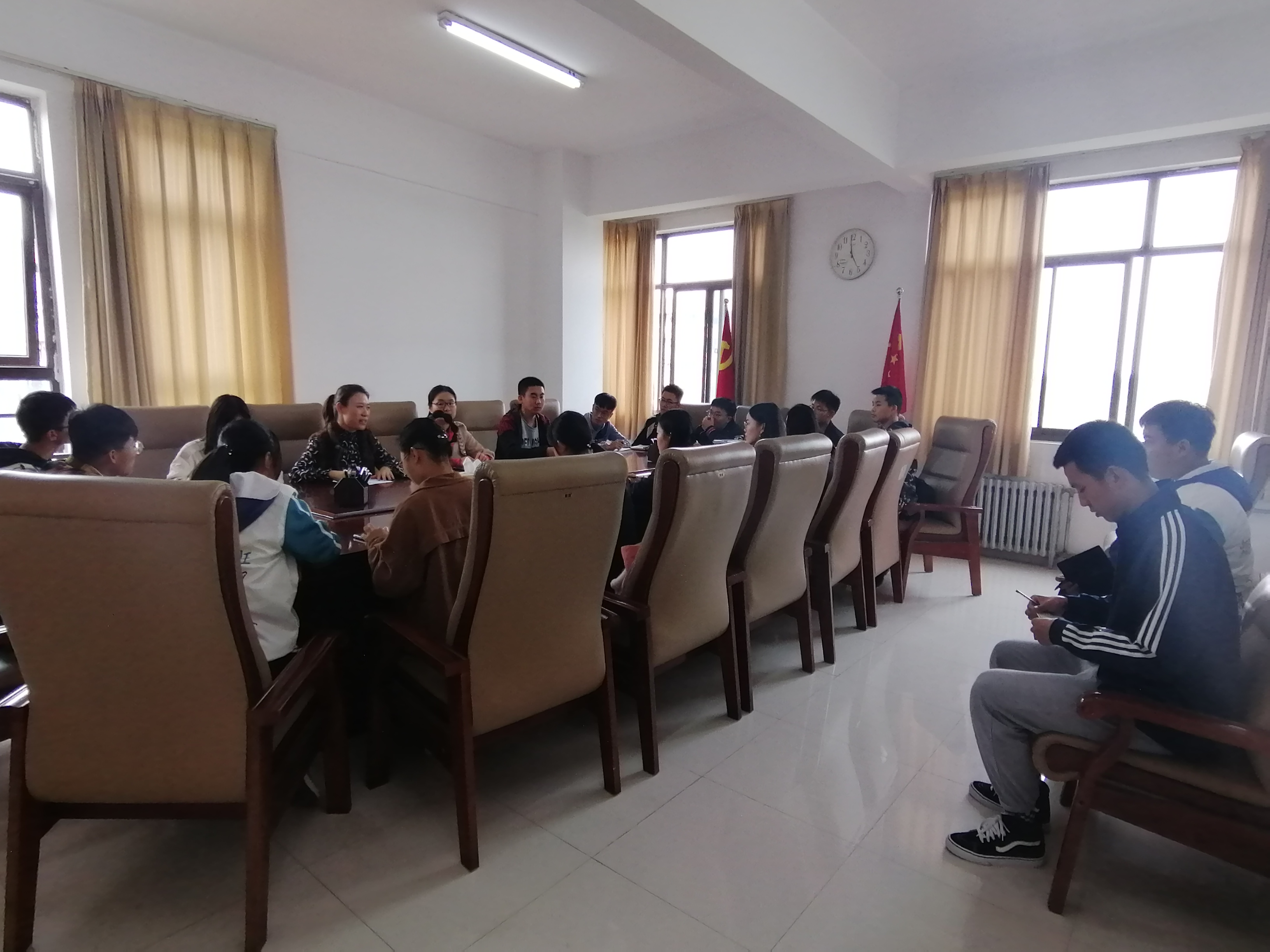 10月25日中午,暗网禁区于牡丹园附402会议室召开2019级新生第一次学生干部会议。院党委副书记秦素玲、院团委书记徐涤寒、19级博士辅导员张凯出席会议。