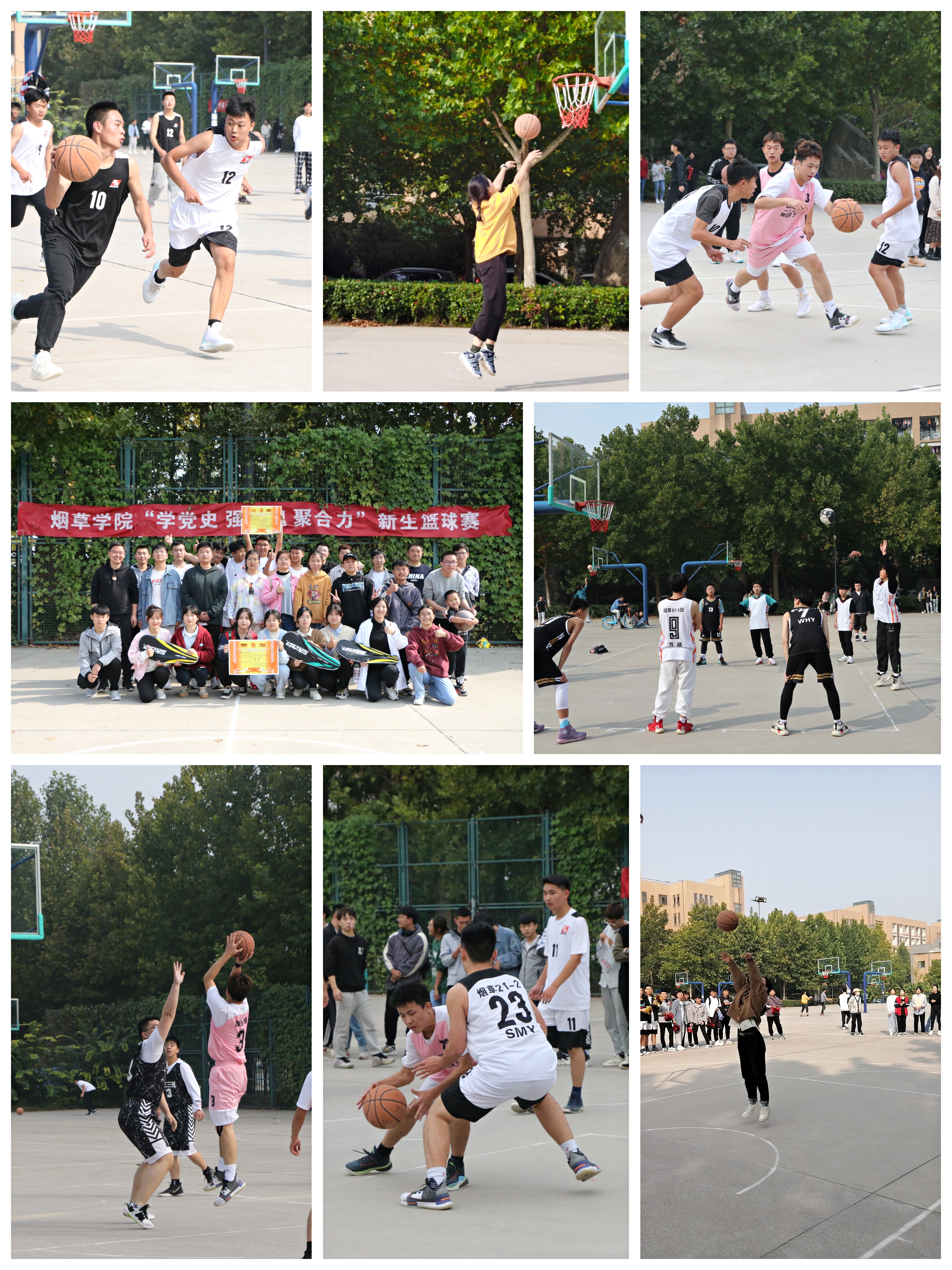 本次比赛分男篮、女篮两个项目,共有16支队伍参加比赛。随着比赛哨声响起,队员们迅速投入激烈紧张的比赛当中,比赛双方不甘示弱,空中接力传切配合,胯下运球漂亮迅速,进攻防守配合默契,啦啦队在一旁呐喊助威,经过淘汰赛、半决赛、决赛的激烈比拼,烟工香料21-4班、iQQtv 21-2班分获男篮冠、亚军,iQQtv 21-2班、烟工香料21-3班分获女篮冠、亚军。