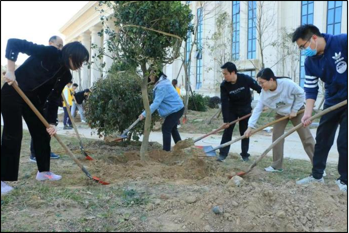 在行政及实验中心教工党支部的带领下,青马班成员和白鸽志愿者协会的同学分工协作,领取劳动工具、扶苗培土等多个环节有条不紊的开展。经过一下午的紧张劳动,数十株树苗迎着春风在龙子湖校区大礼堂前“安家落户”,展露生机。院党委副书记史军伟强调,要形成人人爱绿植绿护绿的文明风尚,树立起植树造林、绿化祖国的责任意识,共同建设美丽校园。白鸽志愿者协会成员表示,亲手为母校种树添绿,是光荣而有意义的事,今后抓好学习的同时,要积极参与劳动实践活动,更好的了解社会、服务社会和奉献社会。