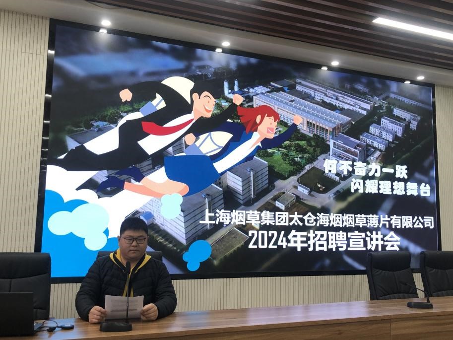 薄片有限公司人力资源部的王老师为毕业生宣讲企业招聘信息。
