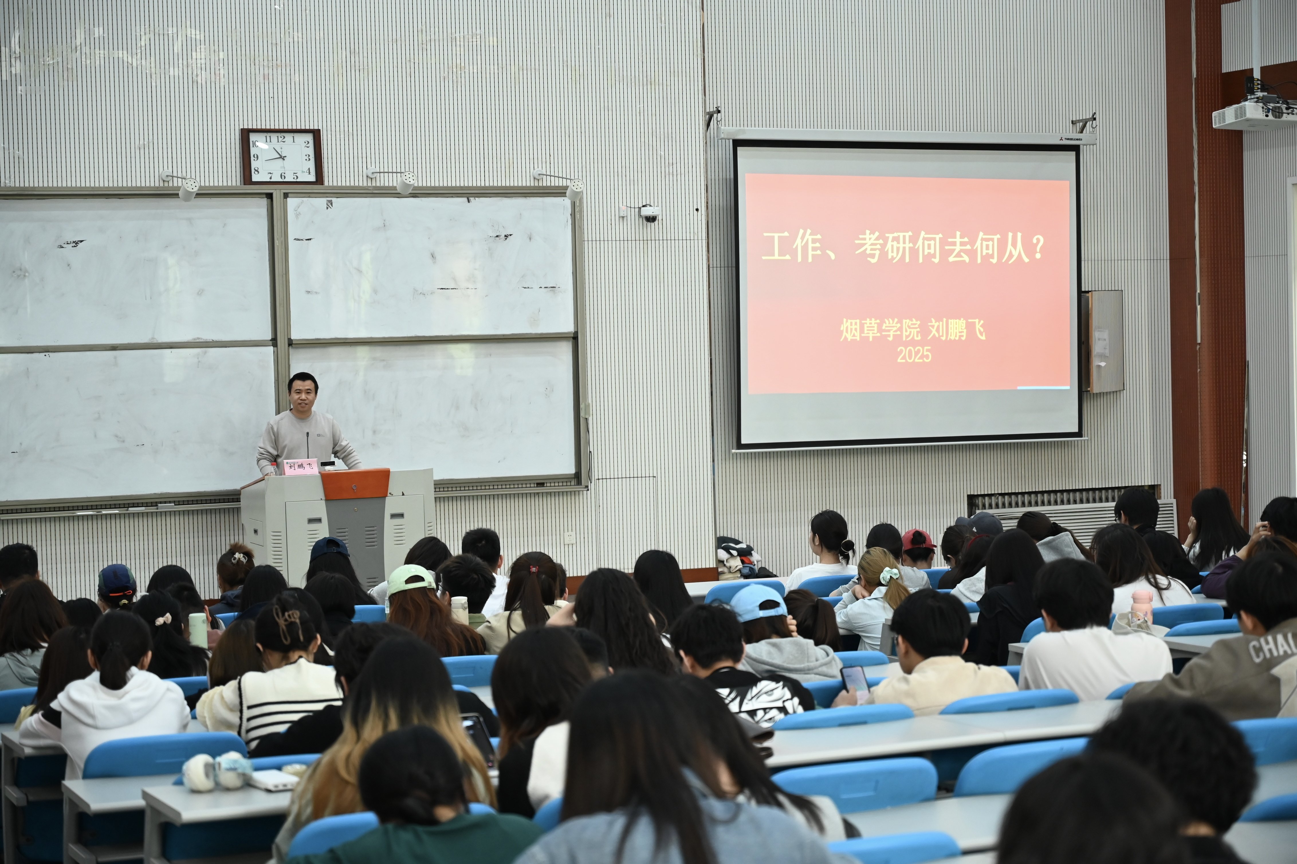 及相关专业院校和科研院所的招生情况,倡导学生要尽早确立考研目标,理清优先次序。学生纷纷表示:刘老师的报告“干货满满”,有效化解了考研就业准备期的迷茫和焦虑。