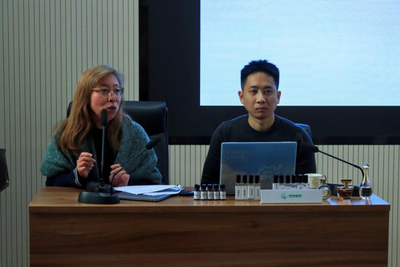 Pierre Pica教授从神经科学与生物语言学交叉视角,深度阐释嗅觉与记忆的神经作用机制,为学员理解香水的情感表达与创作逻辑提供了跨学科视角。Julie从语言学切入,将抽象-具象转化理论融入调香,为学员搭建起从“感官调配”到“记忆符号构建”的创作路径。王德生老师聚焦香水科学基础,结合案例分享原料筛选、配方优化技巧,助力艺术创意与科学配方的融合。培训期间,专家还带领学员品鉴经典与企业香水,通过规范化嗅辨实践巩固评鉴技能,推动理论知识向实践能力转化。