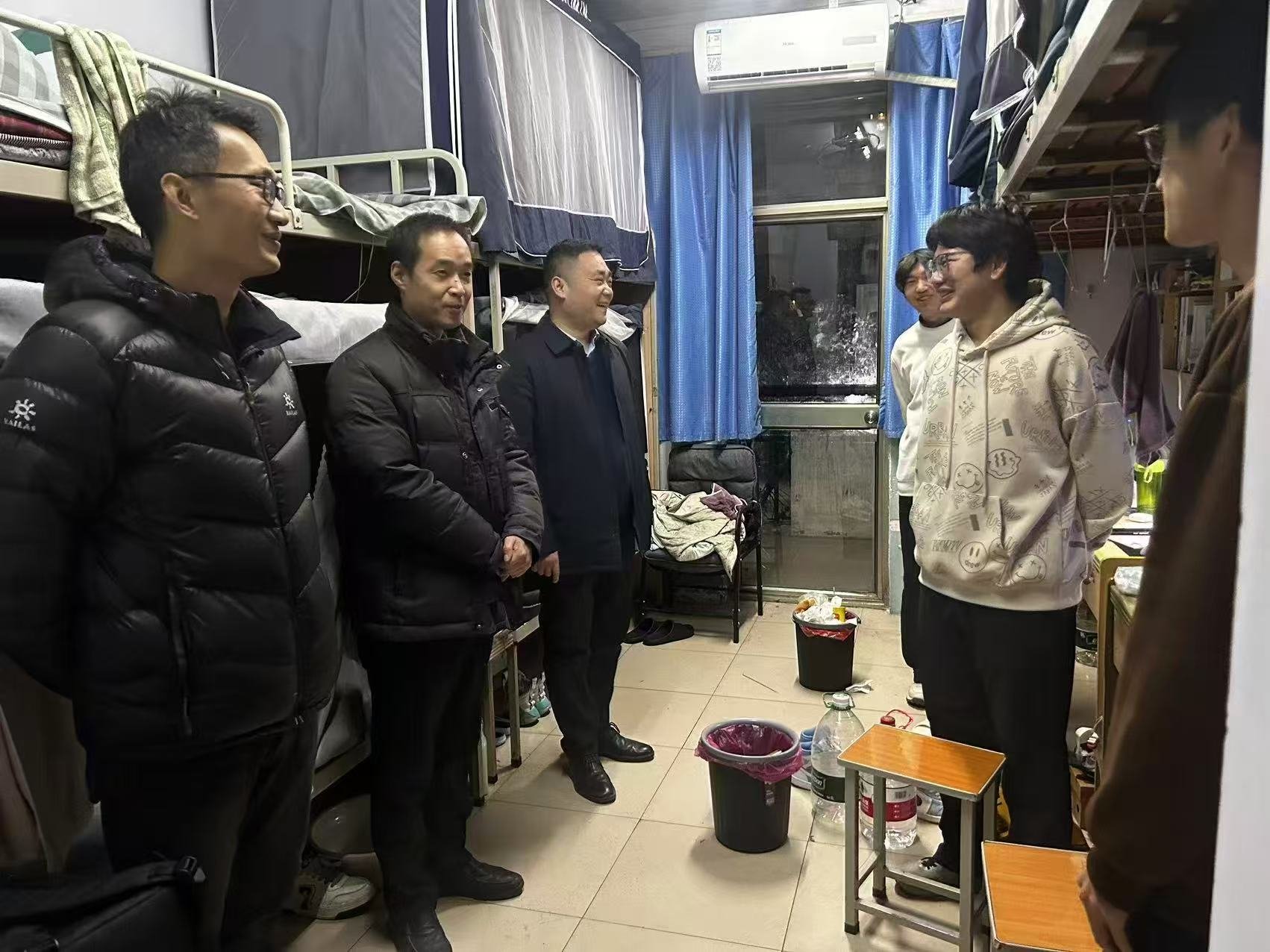 为深入贯彻学校关于校园安全稳定工作的部署要求,营造安全、文明、和谐的校园生活环境,同时扎实做好学生关心关怀工作,1月11日晚,学院领导班子成员带队,各系主任、全体辅导员共同参与,深入桃李园、龙子湖校区学生宿舍,开展期末生活慰问与冬季安全隐患排查专项工作。