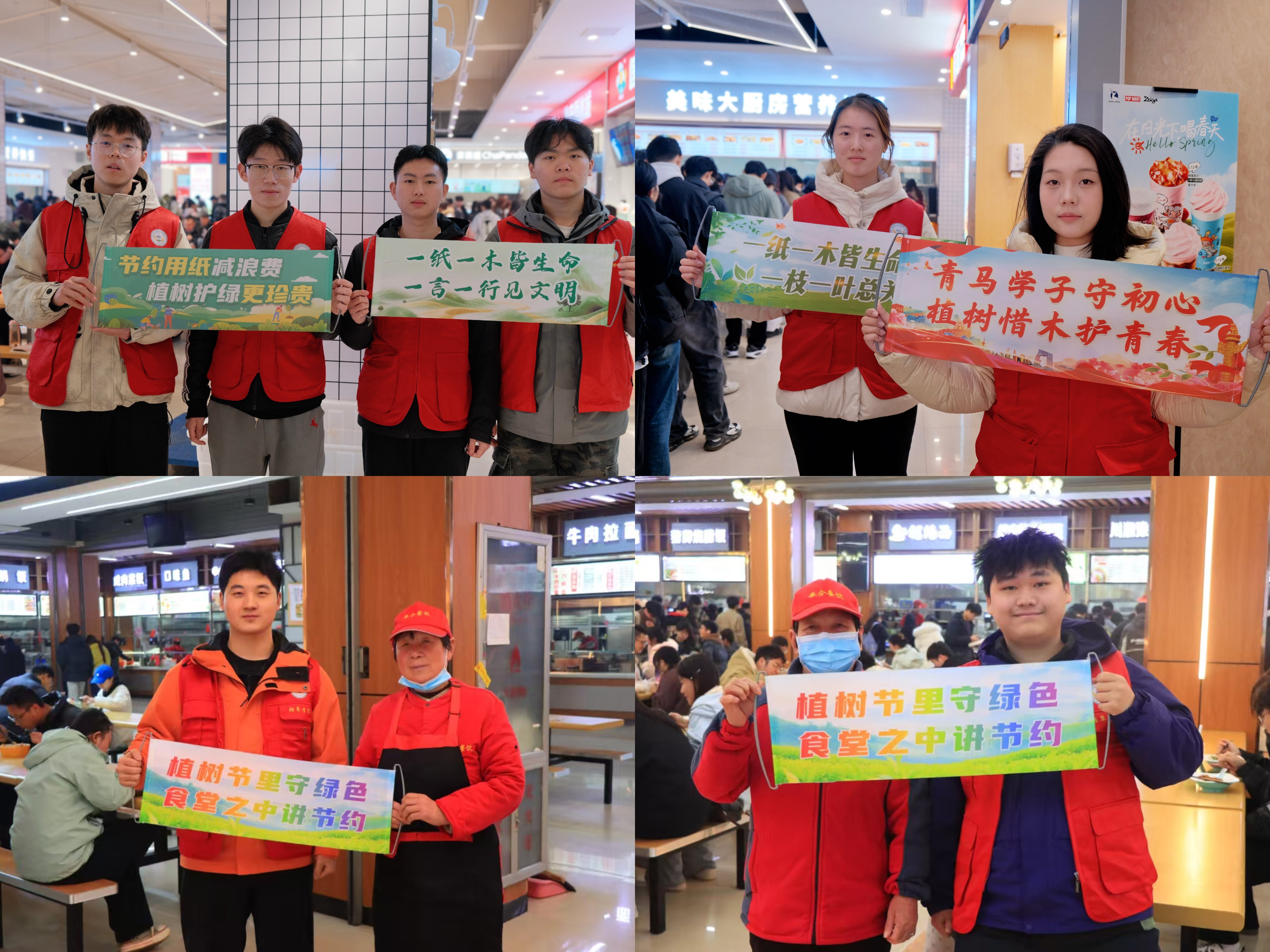 活动中,志愿者们身着志愿马甲,在餐厅入口、取餐区与餐桌旁向就餐师生科普环保知识,倡导“不使用一次性筷子”“按需用纸、杜绝浪费”,呼吁大家从一餐一筷、一纸一巾做起,减少林木消耗,守护生态底色。引导师生养成简约适度、绿色低碳,明用餐、绿色低碳的生活习惯,以实际行动为生态文明建设添砖加瓦。