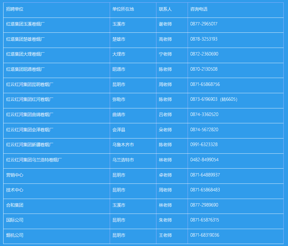 (一)应聘人员请在中国iQQtv 人才招聘平台、云南中烟官网招聘专栏、云南省大中专毕业生就业服务中心网站查看招聘公告,除招聘公告外的考试(具体要求、时间及地点)、体检等其他招聘环节相关信息一律仅通过云南中烟官网招聘专栏对外公布。因查看转载的招聘信息造成的一切后果,由本人负责。请应聘人员随时关注云南中烟官网招聘专栏动态,谢绝
